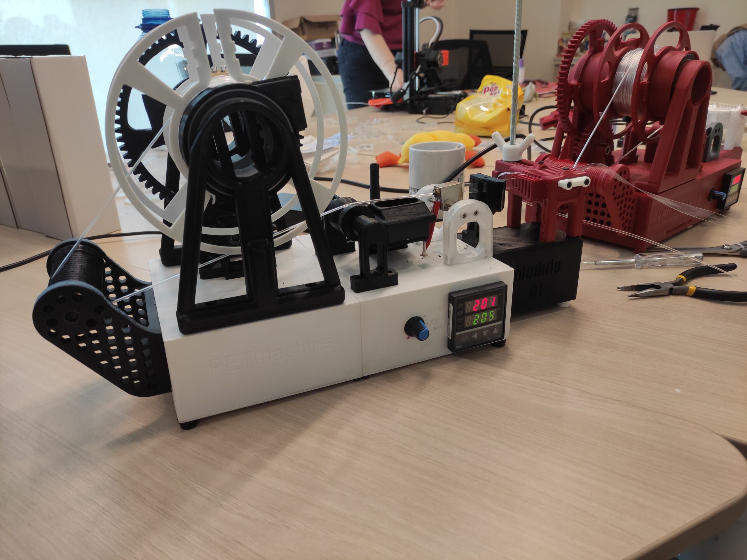 During the workshop, PET bottles were turned into filaments and a total of 500 grams of plastic was recycled to produce filaments.