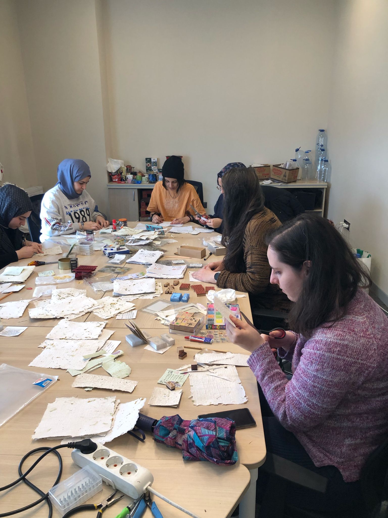 The workshop program continued with the “DIY – Seeded Paper Workshop” focusing on the recycling of institutional paper waste. In the workshop led by Sıla Selin ÖZKAN, board member of IMU Sustainability Student Club, the participants were firstly informed about the history of paper, the materials used in paper making and the materials and techniques used in paper making with traditional methods in Turkey. ÖZKAN, who also gave information about IMUSUS’s institutional waste recycling project, gave technical information to the participants on how to recycle waste paper. In the application phase of the workshop; waste papers that were collected and separated within the campus areas of our university were recycled and turned into new seeded papers. In the traditional paper production workshop, pulp was first prepared from the shredded paper. IMUSUS, aiming to ensure that the paper to be used to produce calendars does not become waste after use, added wildflower seeds to the pulp so that the calendar paper of each month becomes compost after use and wildflowers flourish in this process. Wildflower seeds collected by community members in BioBlitz workshops were used to produce the seeded papers. Thus, it was aimed that the calendars to be produced would contribute to biodiversity when their intended use is completed. Within the scope of the workshop, 500 grams of waste paper was recycled.