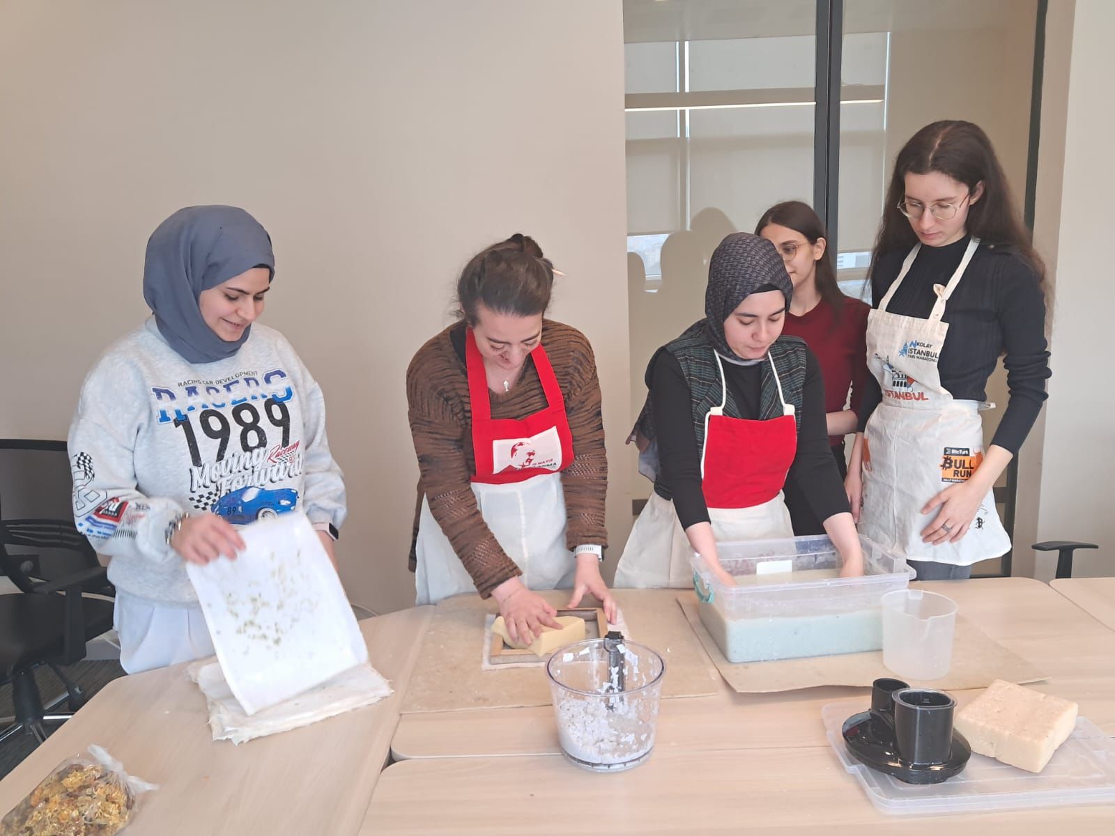 In order to draw attention to the importance of recycling on “Global Recycling Day”, IMU Sustainability Student Club (IMUSUS) organized a 3-stage recycling workshop on March 18, 2025 at the Sustainability Office, open to the participation of Istanbul Medeniyet University students, staff and the public, including DIY Calendar Base Workshop, DIY Seeded Paper Workshop and DIY Calendar Workshop. The workshops, hosted by the Sustainability Office, were open to the participation of Istanbul Medeniyet University students, staff and the public.