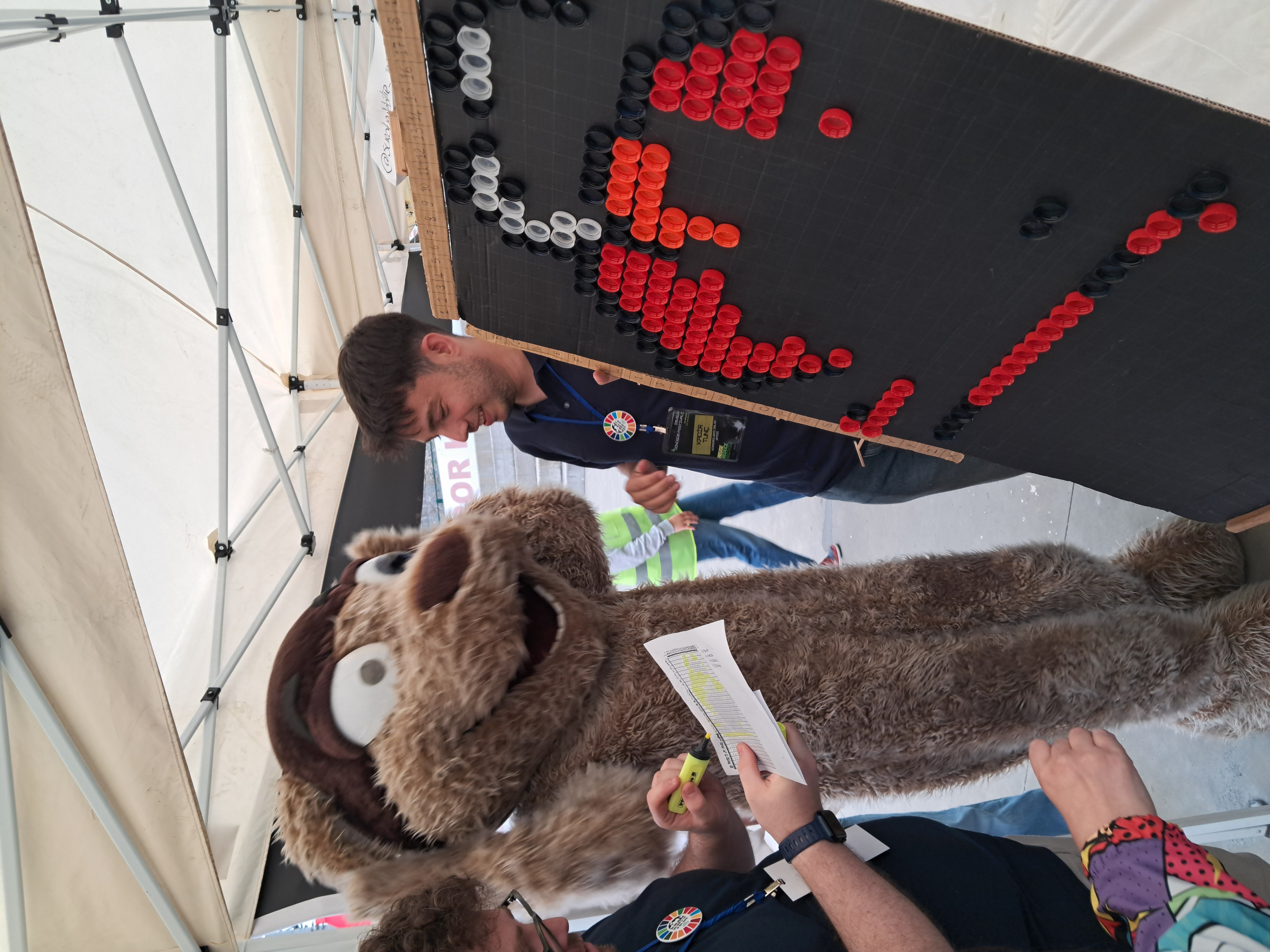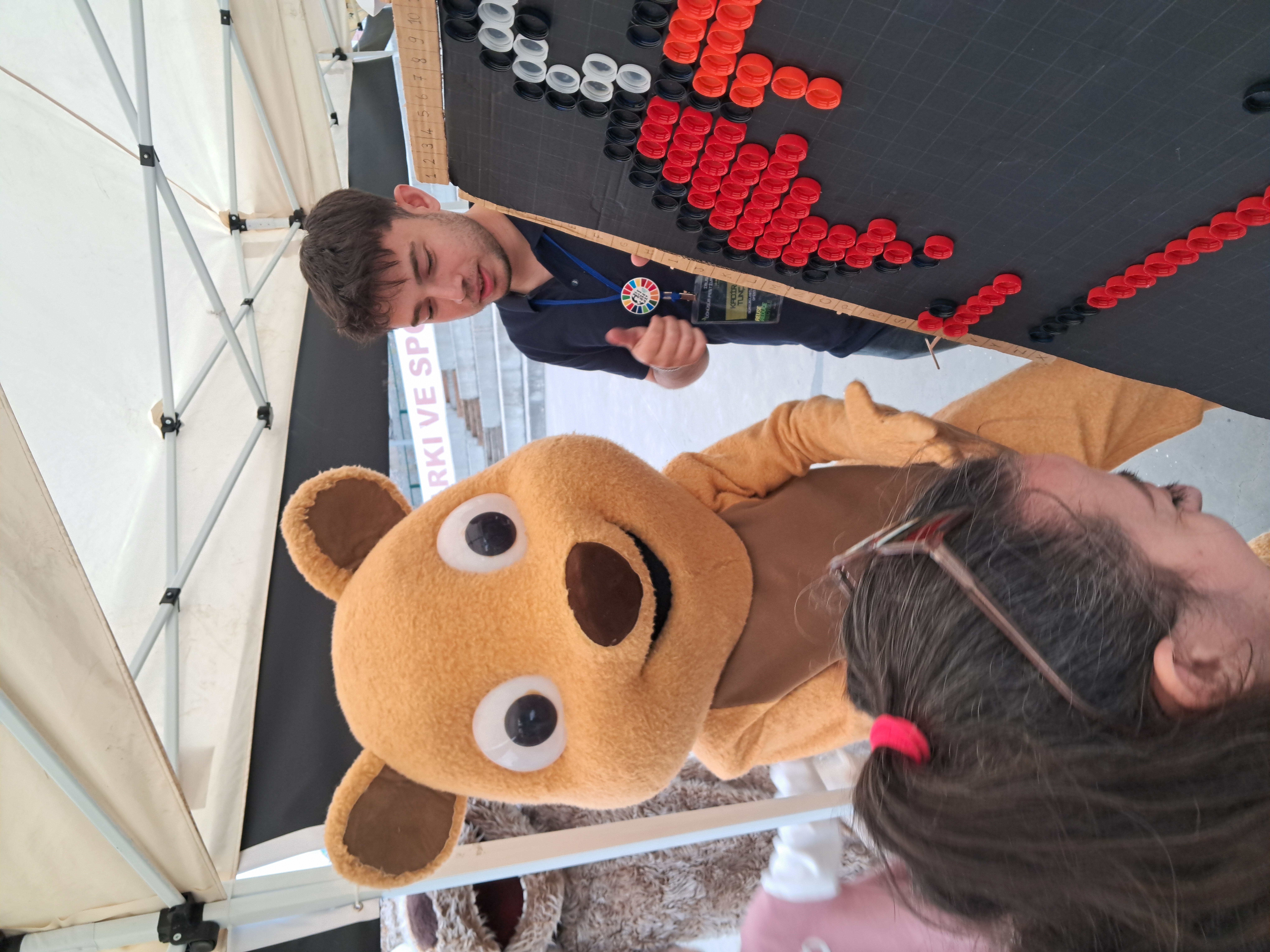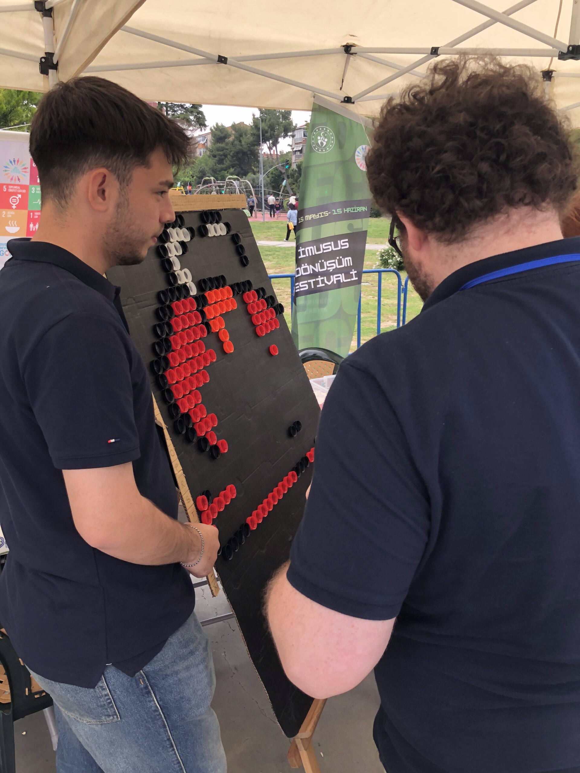 During the festival, which was open to the public on Sunday between 13:00-16:30, IMUSUS organized a “Plastic Upcycling” workshop where plastic caps were transformed into works of art. In the workshop, which continued during the festival, plastic lids collected by the student club from the cafes and canteens on campus and waste cardboard from the markets were used to create a painting featuring the famous character Elmo from the Sesame Street show with the help of the participants. The participants actively contributed to the creation of the artwork by placing the lids in the correct area with the coordinates given to them and experienced sustainable development concepts such as “reuse”, “waste reduction” and “circular economy” in practice. With this creative recycling project, a total of 570 plastic caps were used, while approximately 765 g of plastic was upcycled and saved from waste. The completed work was the third work to be exhibited at the Transformation Festival exhibition.