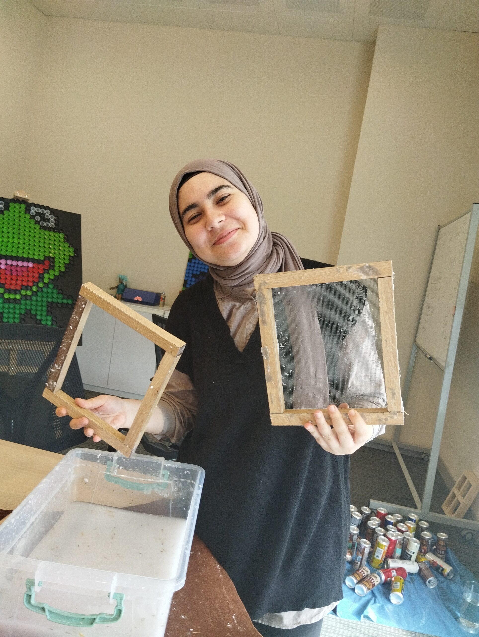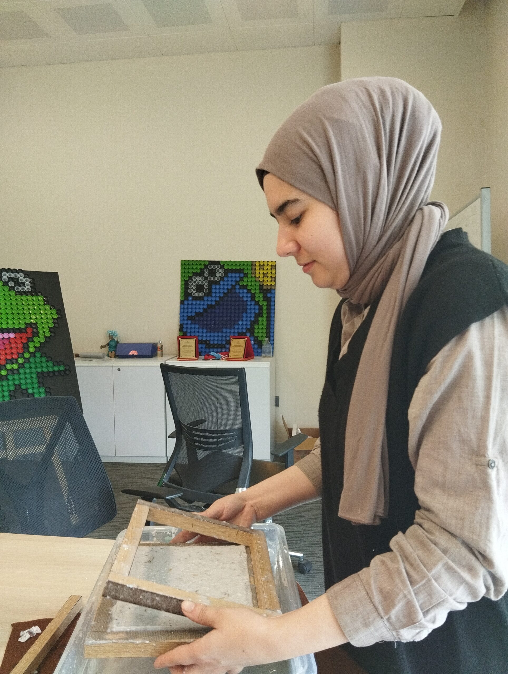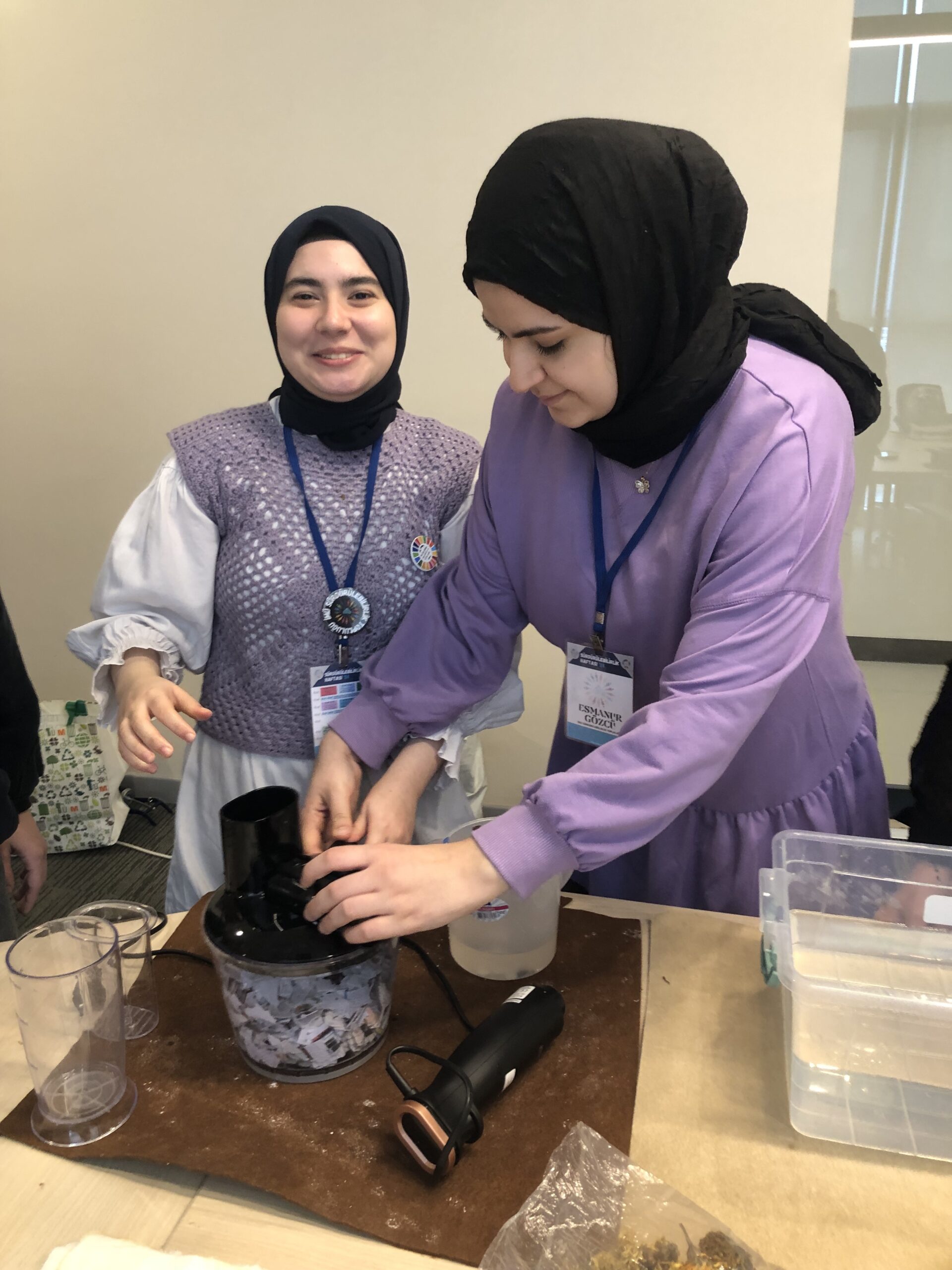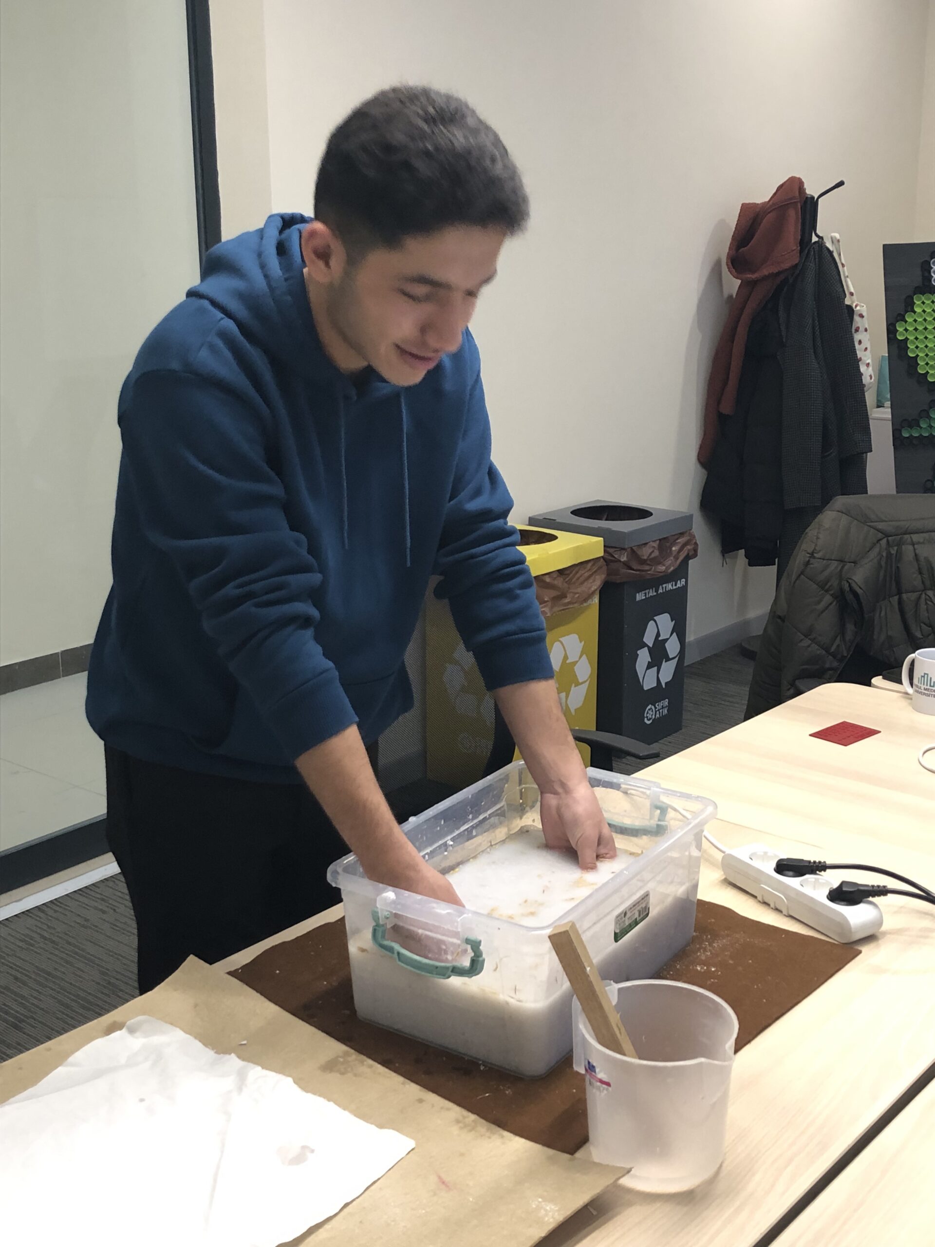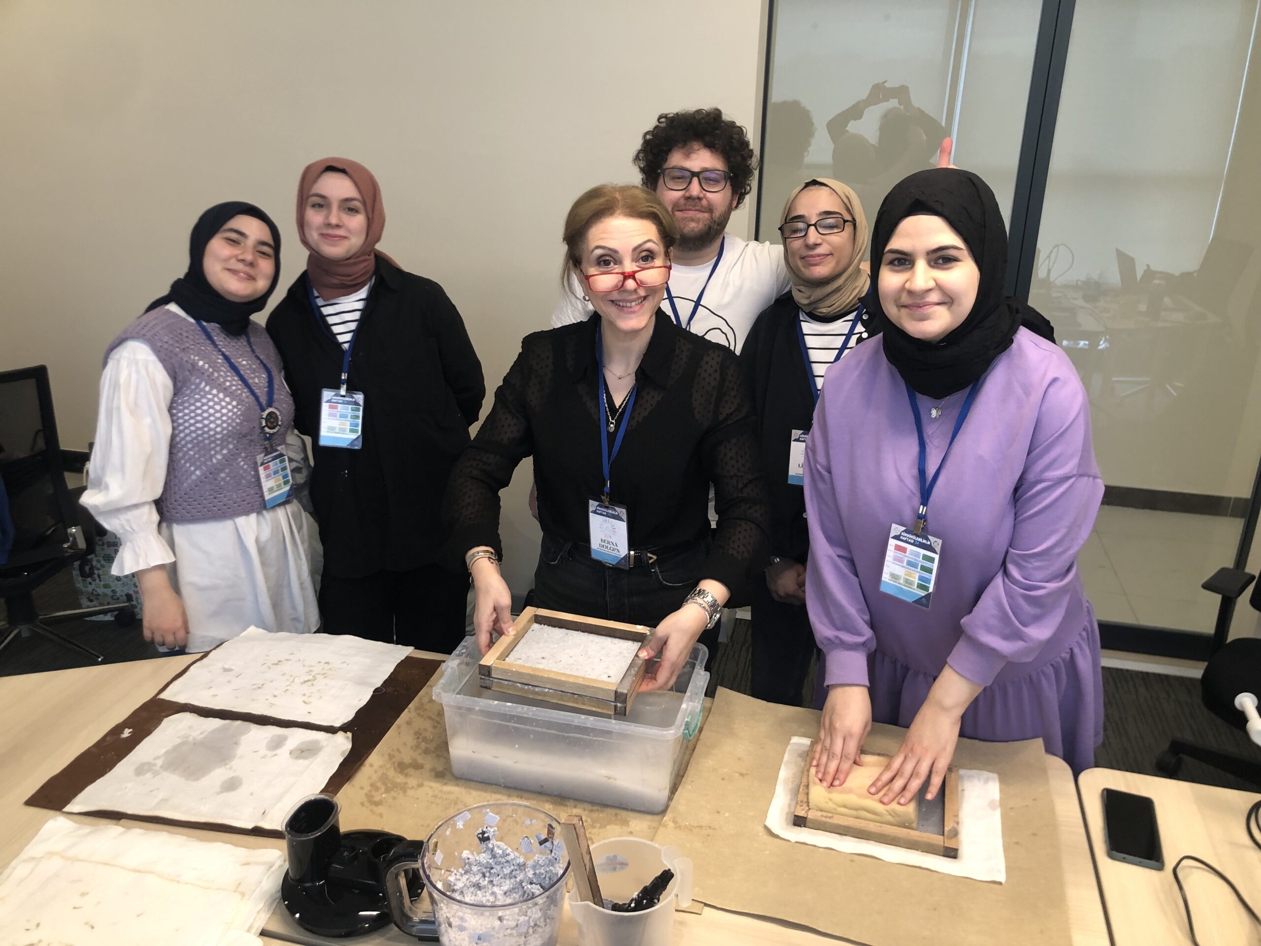 Within the scope of the project, the Sustainable IMU team first received a training on recycling waste paper with the “Handmade Paper with Traditional Method” training organized within the Sustainability Week 2023 activities. After this training, the project team prepared their own social responsibility project to recycle institutional paper waste and contribute to the circular economy by producing new products.