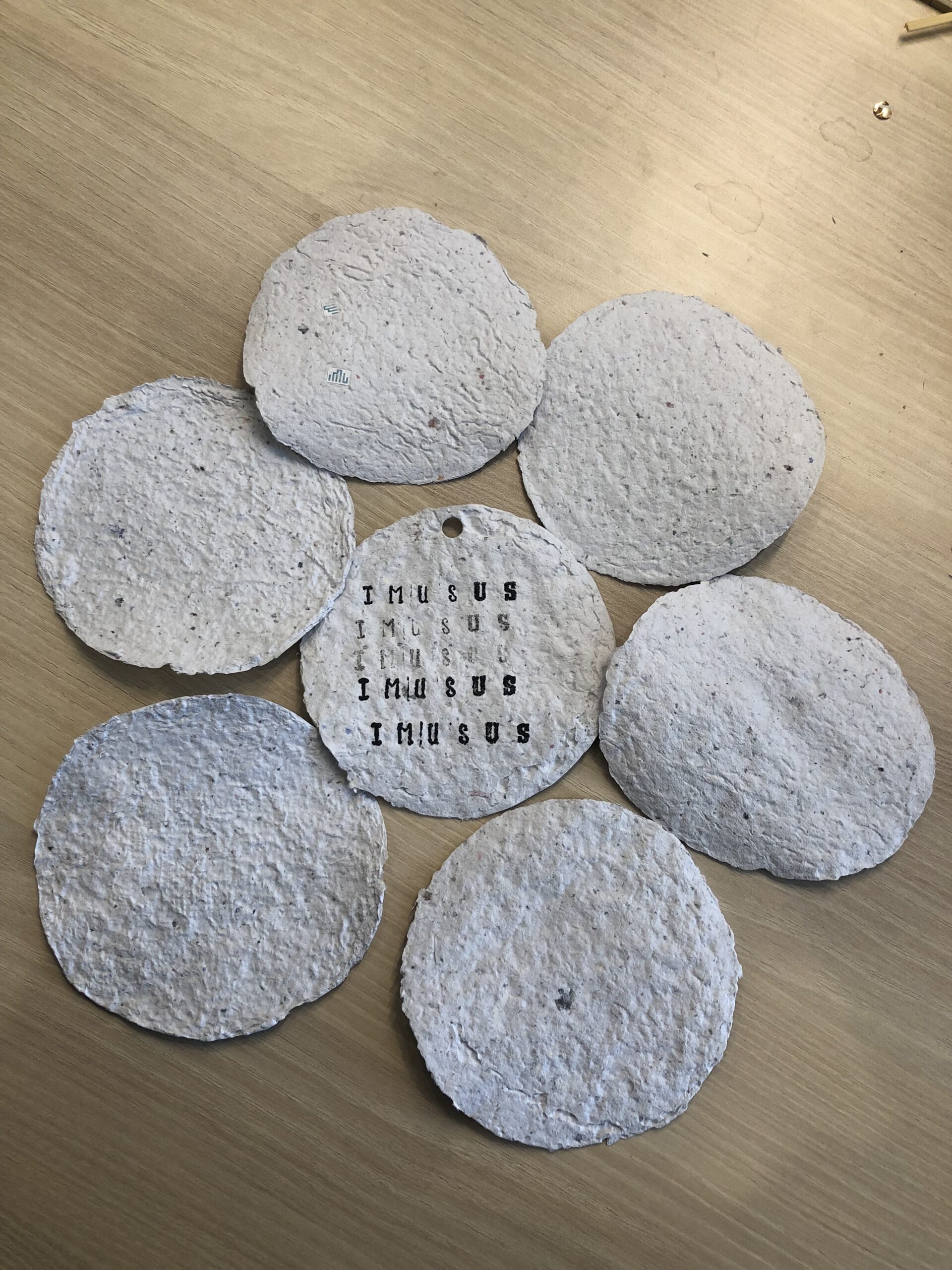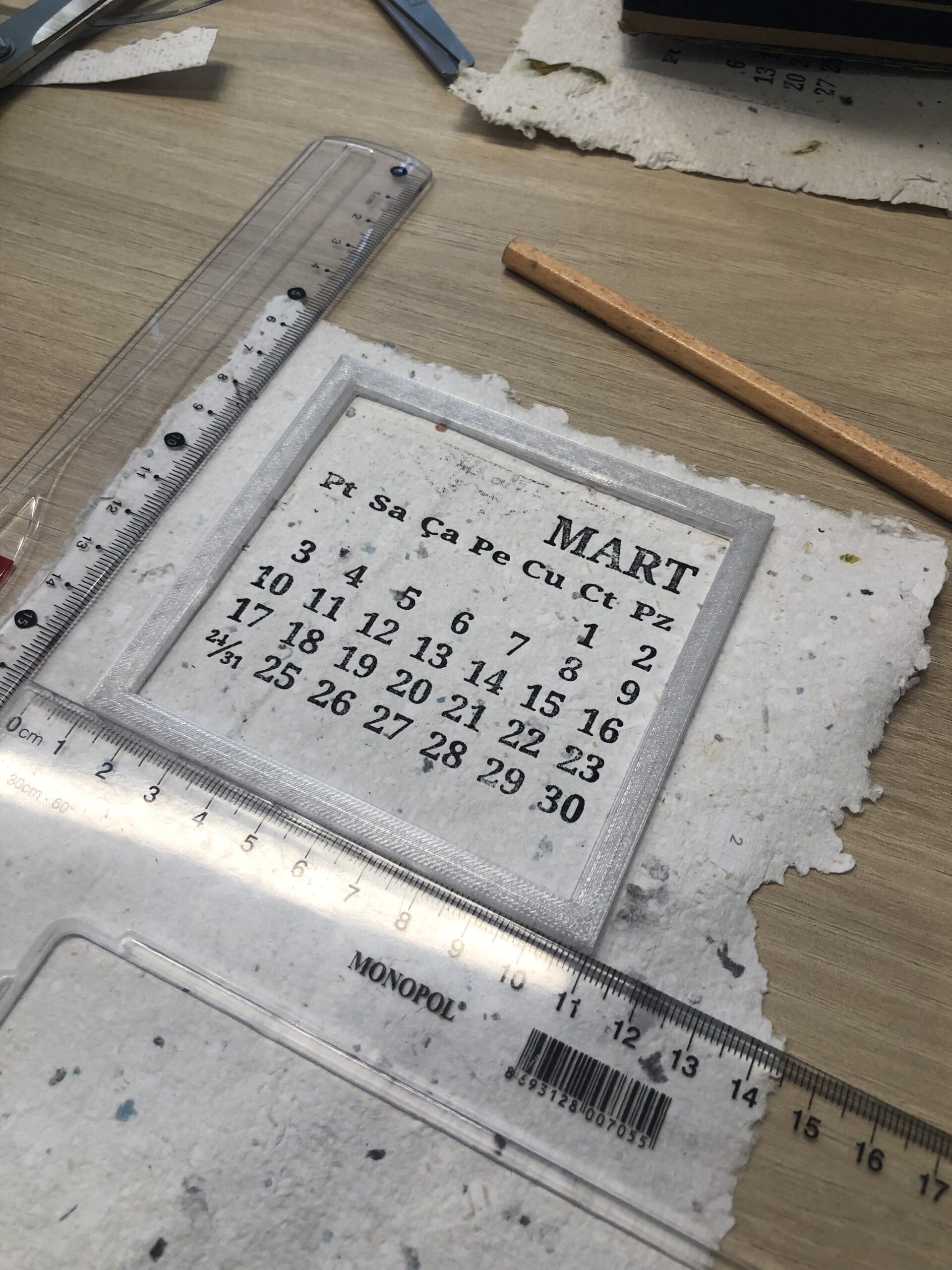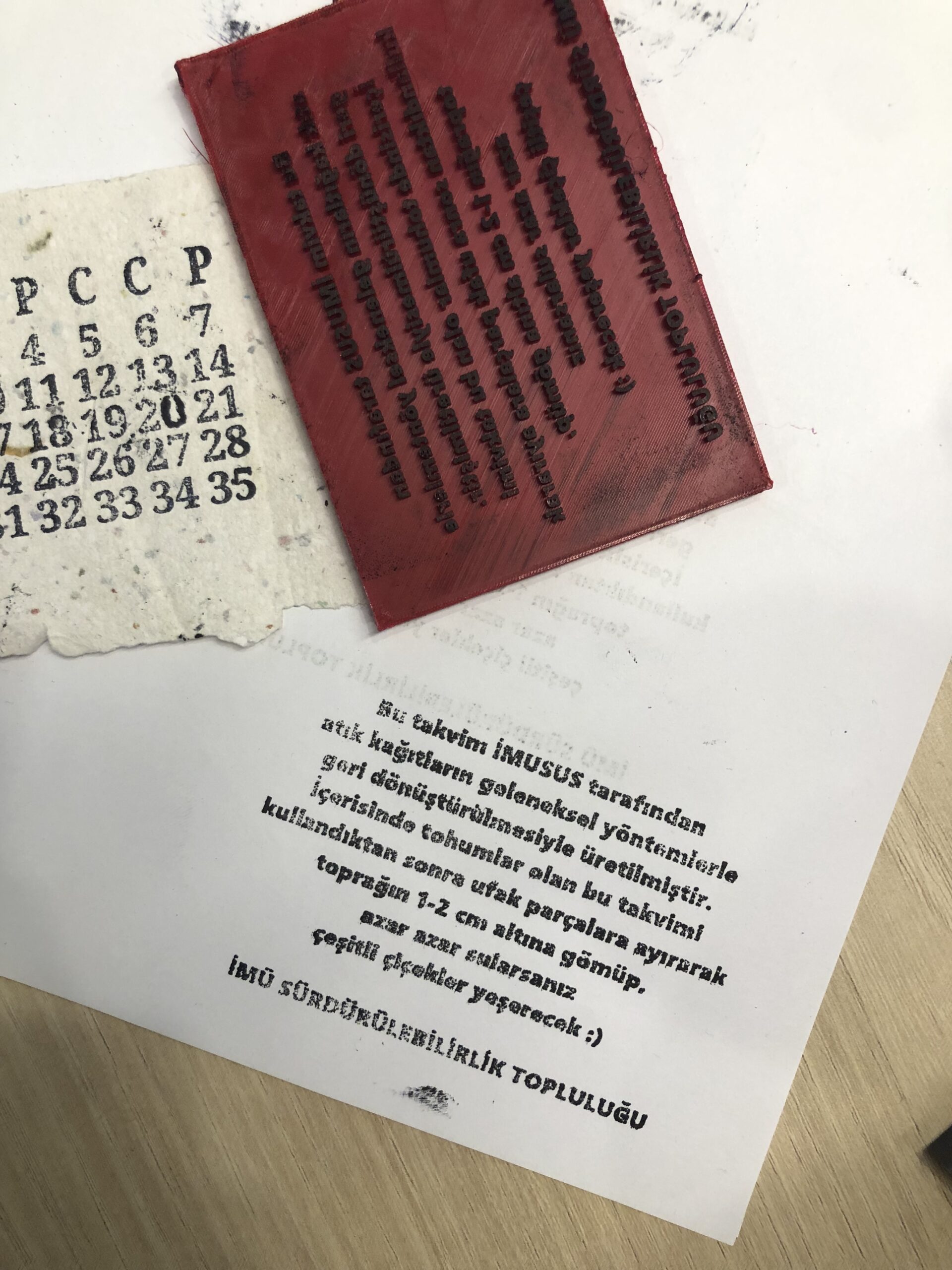 In the first stage of the project, a paper workshop was established to recycle used and separated waste paper collected within our University and students were trained on the paper recycling process and traditional methods. In this process, all administrative units were informed about the project and the types of paper that can be recycled within the established paper workshop, and the waste paper generated in the units throughout 2024 was collected by the club members. In the paper workshop supported by Arçelik with its recycled products, the paper that became waste after being used within the institution was mixed with various wildflower seeds collected by IMUSUS from natural areas and turned into seed paper and finally transformed into calendar designs. The design of the “IMUSUS 2025 Seed Calendar” was created by the research assistants of the Sustainability Office, who are also the academic advisors of the project, Res.Asst. Ayça ÇELİKBİLEK and Res.Asst. Furkan ERUÇAR, while the entire production process of the calendar was carried out by recycling and upcycling the wastes generated within the campus areas. Thus, the production process developed within the scope of the project included all of the reduction, reuse and recycling principles of the waste management hierarchy. ÇELİKBİLEK and ERUÇAR expressed this feature of the project in the following words: “Although the production of the ‘IMUSUS Seed Calendar’ is basically a paper recycling project, the entire project was developed based on circular economy principles. While the calendar papers were obtained by recycling the waste paper generated within the institution, the sieves used in the production of the calendar were produced by the project team by upcycling the leftover wooden slat pieces generated during the construction of the North Campus C Block building. While support was received from Arçelik for the blenders used in the pulp production process, recycled products were used for these blenders. In addition to the paper production process, the plastic materials used in the printing of the calendar lettering and the bottom bases of the calendars were produced by recycling the plastic bottle wastes generated within the campus areas by the project team in the plastic recycling workshop established in partnership with TylmanDesign. The collected pet bottles were first converted into PET filaments with the PetMachine, and then products such as stamps and bases required in the process were produced with this material. The workshop aprons used by the team members during the workshops and calendar pouches were similarly produced using discarded cloth bags and waste fabrics. Therefore, not only in calendar papers, but also in all product design and production processes, the project focuses on circular economy and adopts a zero waste policy.