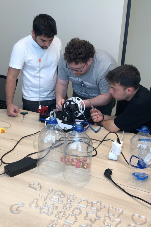 A total of 770 grams of waste PET was recycled during the workshop. In the continuation of the event, the participants produced 20 play dough molds with 3D printers using these filaments.