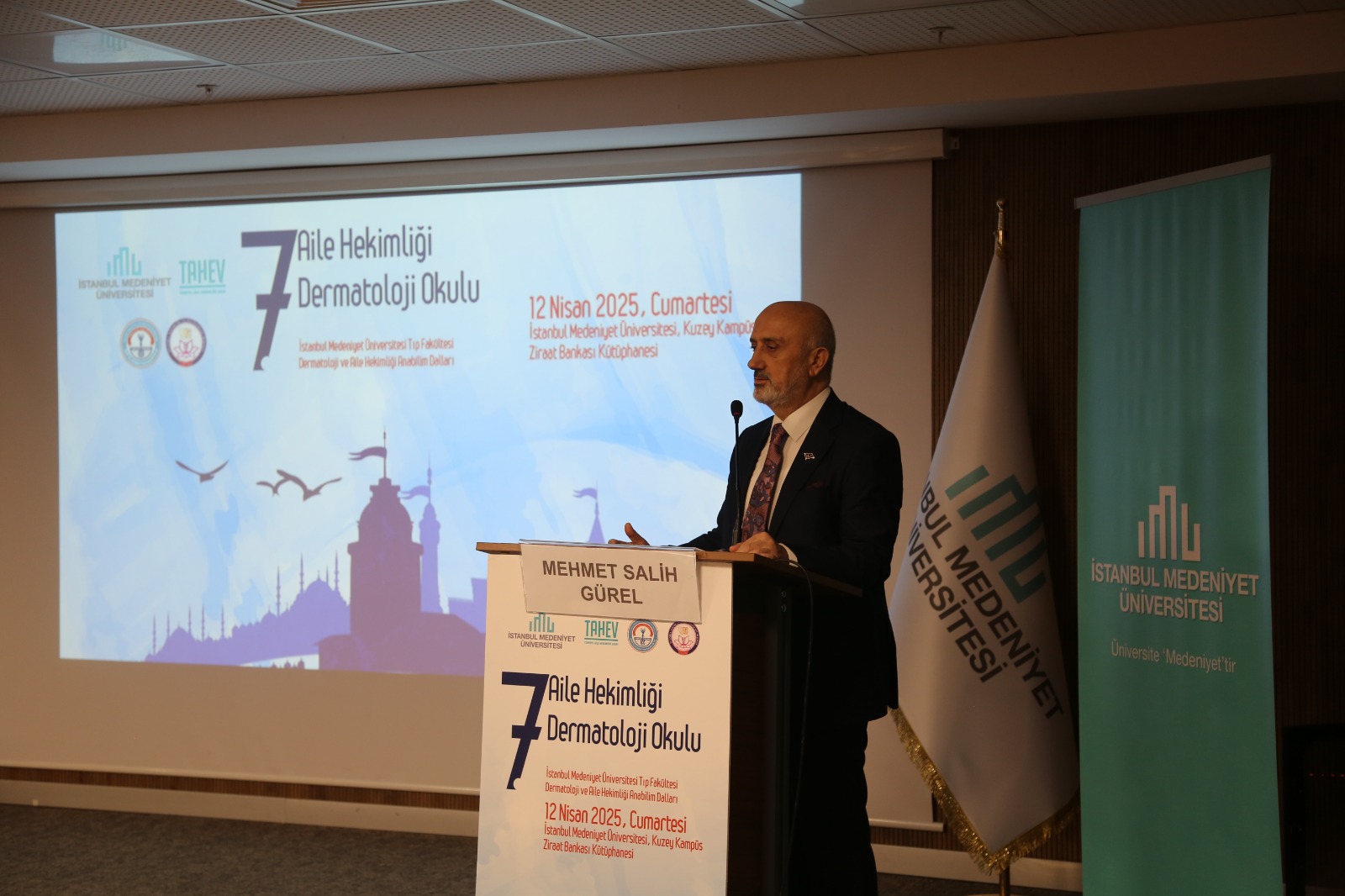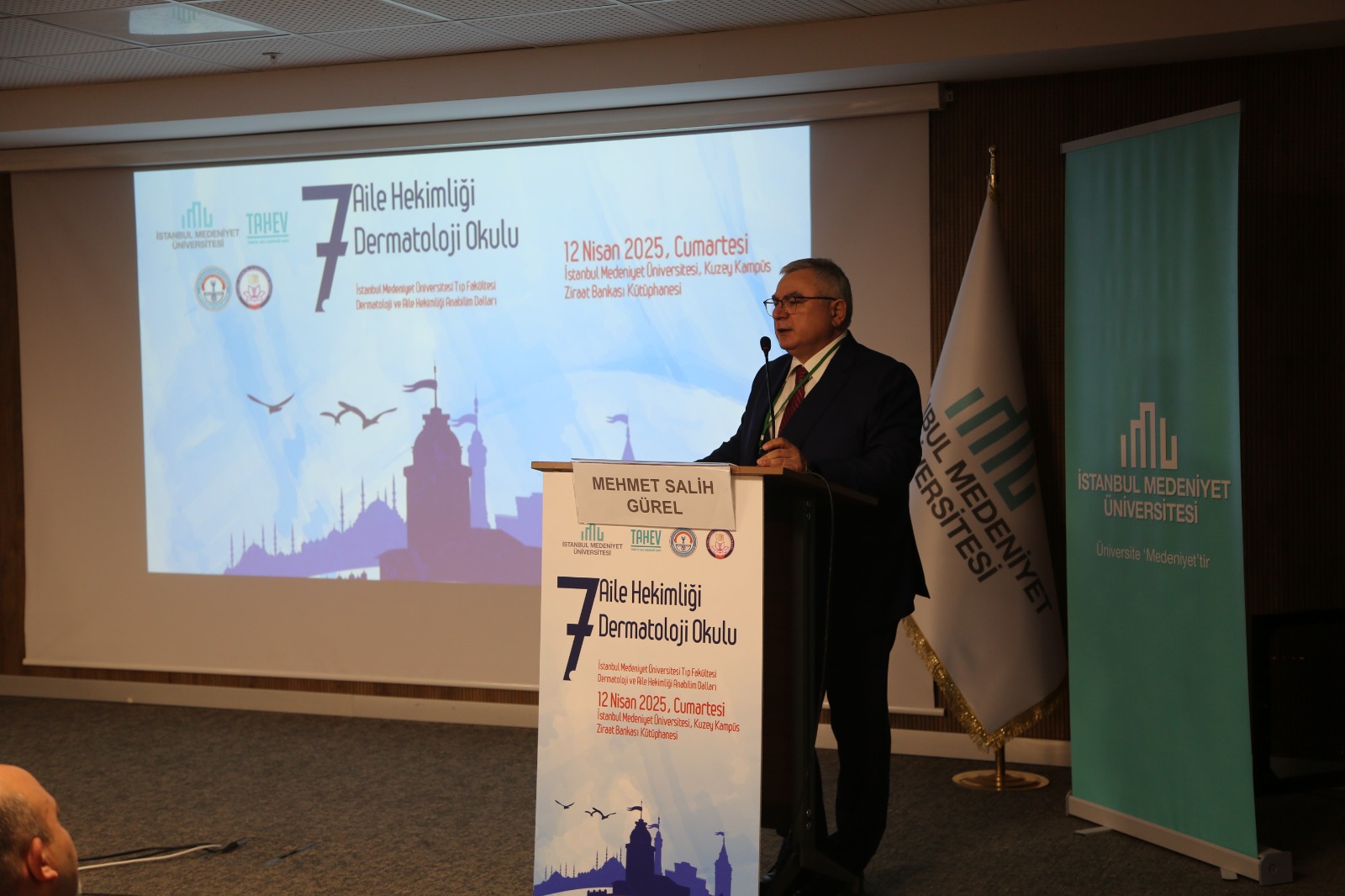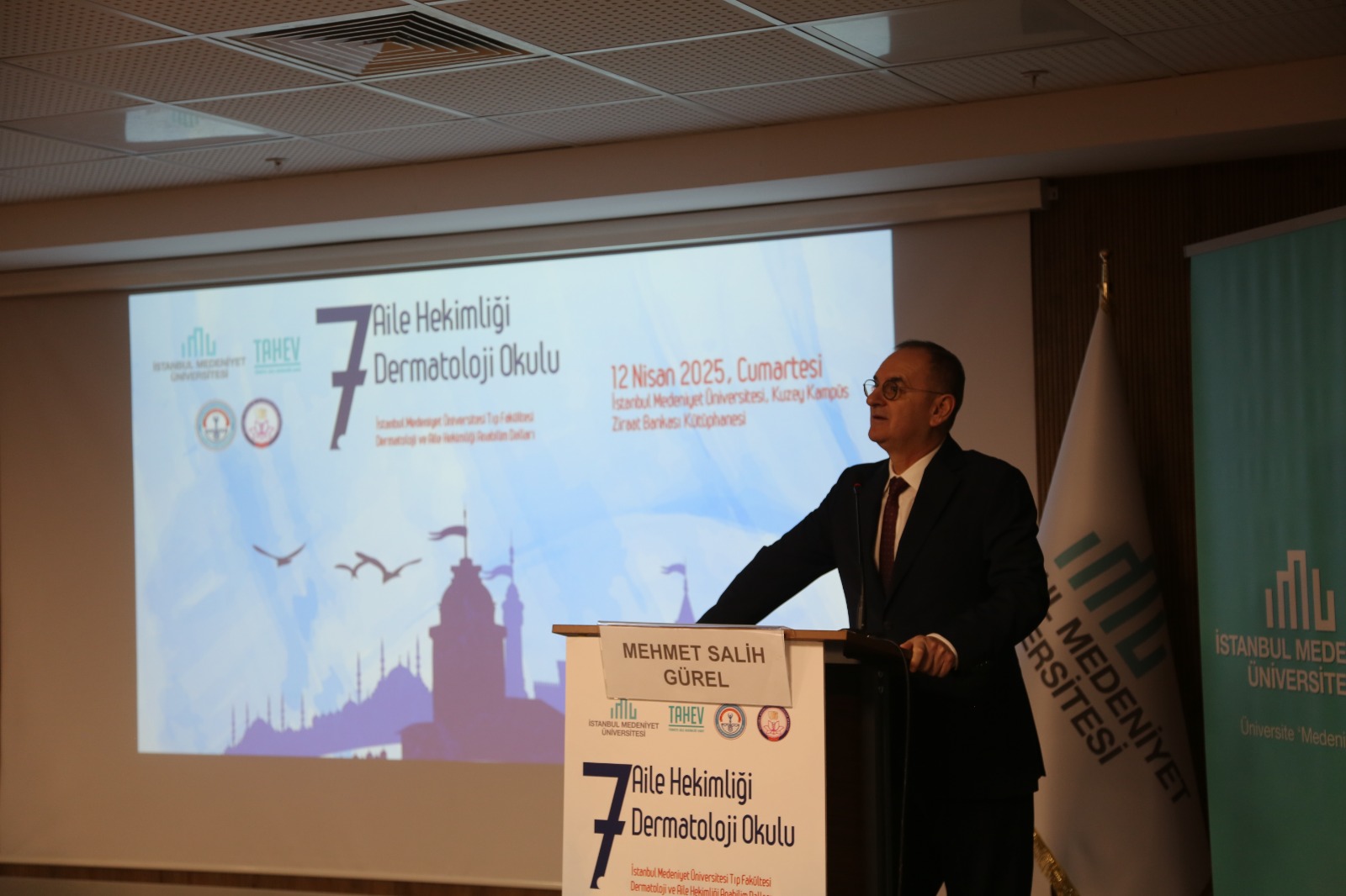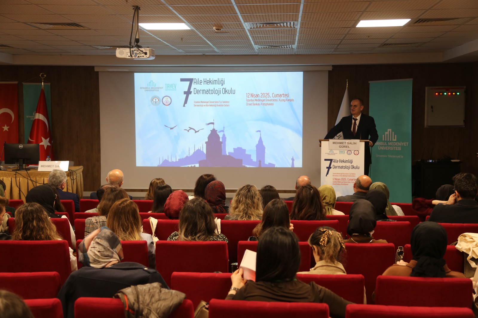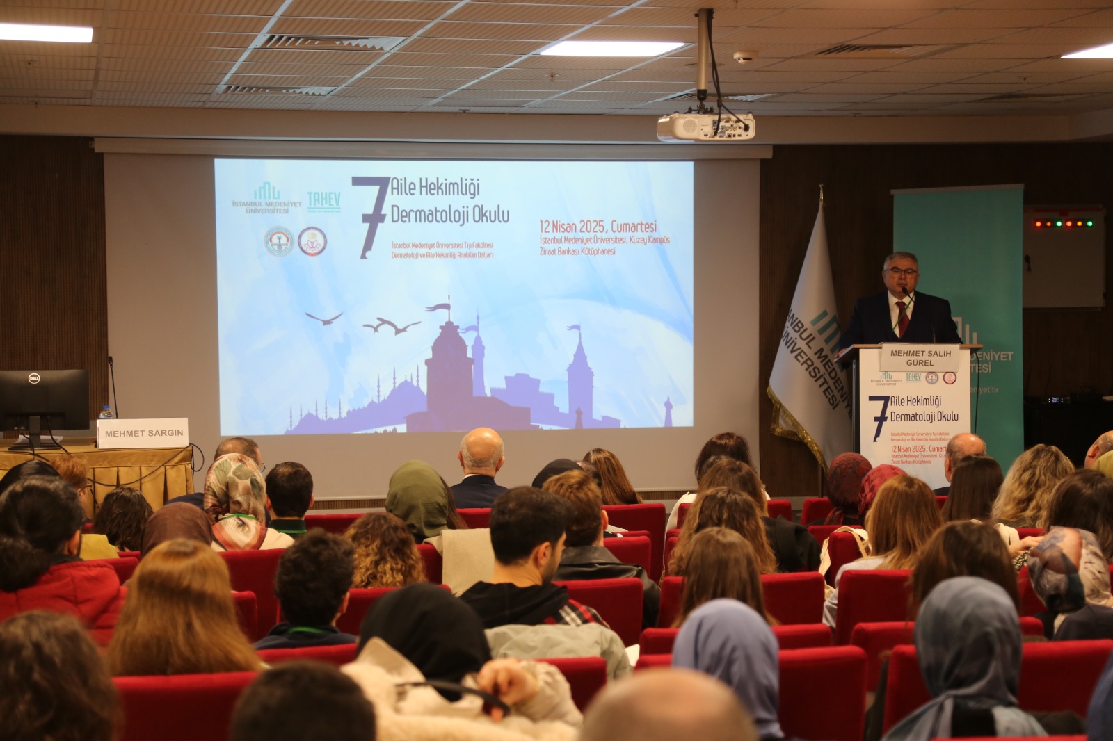 The seventh of the “Family Medicine Dermatology School” event, organized annually by Istanbul Medeniyet University Faculty of Medicine for family physicians and dermatology residents, was held on April 12, 2025 at the Central Library Ziraat Bank Hall. In the training program organized to contribute to the professional development of family physicians and dermatology assistants working in primary health care services, the diagnosis and treatment approaches of the most common skin diseases were discussed in depth by academicians specialized in dermatology and family medicine.