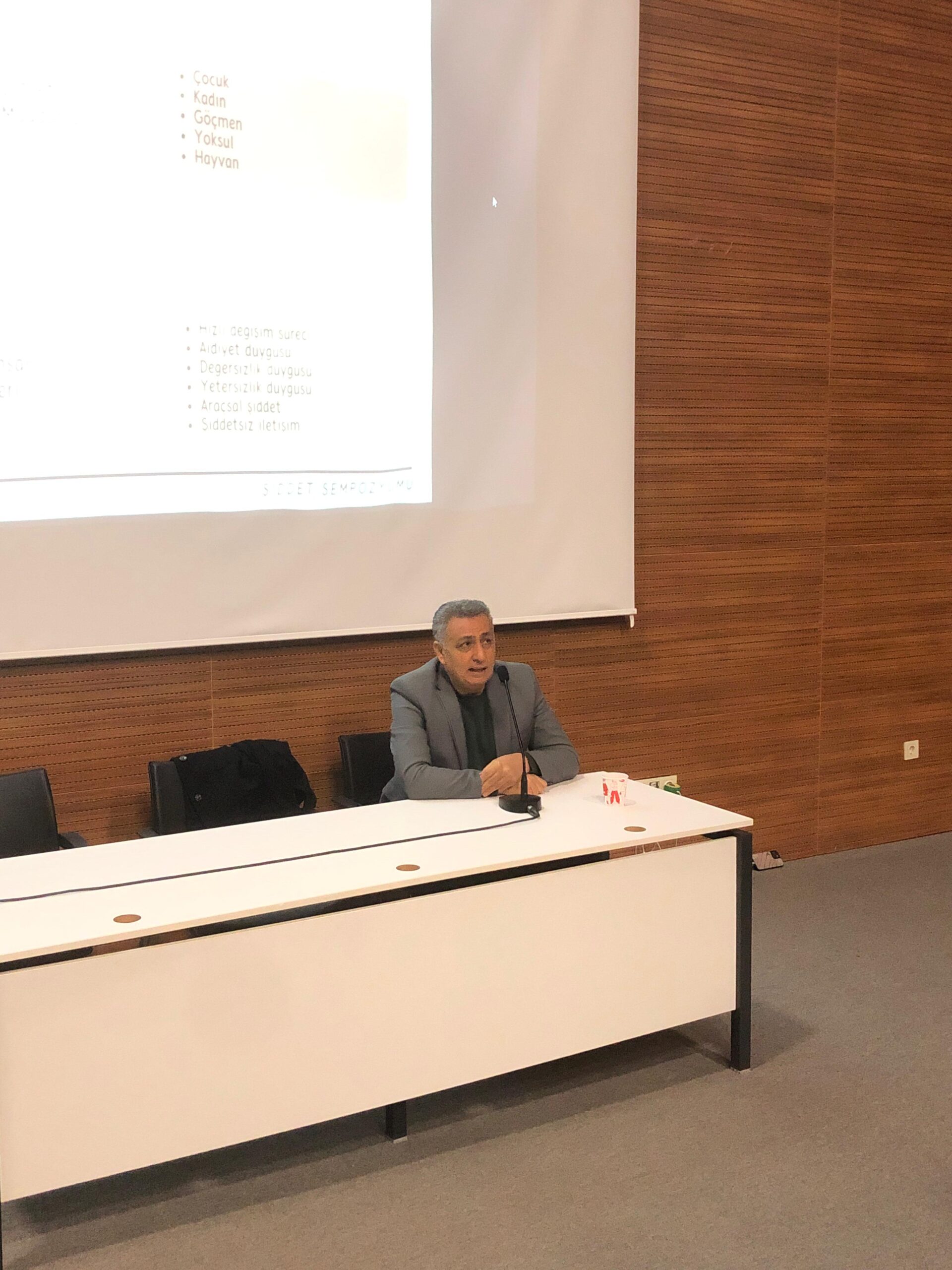 In the event attended by Public Prosecutor Assoc. Prof. Dr. Cengiz APAYDIN, Prof. Dr. Ali Kemal YILDIZ, Lecturer Enver MENGÜ and Research Assist. İbrahim Şahin ATEŞ as speakers, the concept of violence was discussed comprehensively from the perspective of psychology, law and social work specialties.