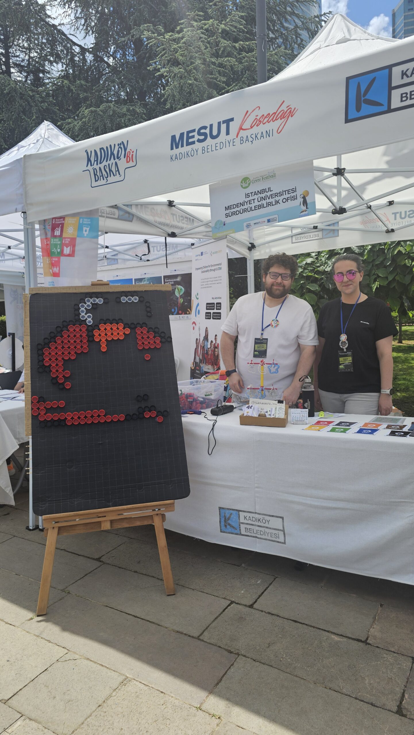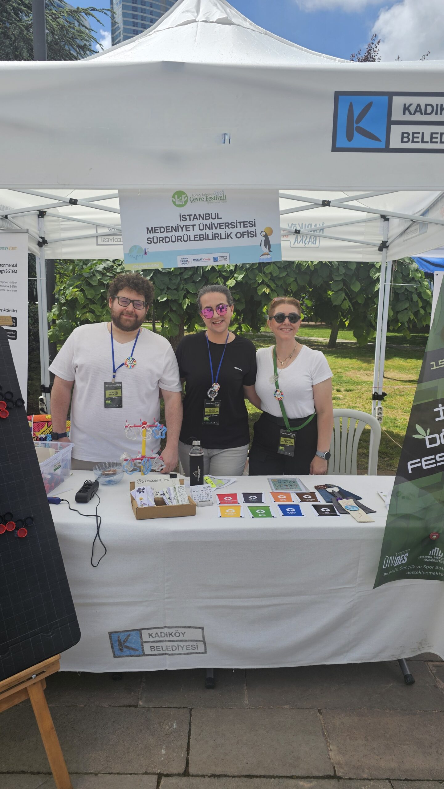 Kadıköy Belediyesi’nin her yıl Dünya Çevre Günü etkinlikleri kapsamında düzenlediği Çevre Festivali bu sene şehirlerimizin geleceği için atılacak adımları ve sürdürülebilir yaşamın önemini vurgulamak üzere “Sürdürülebilir Şehir: Kentte Ekolojik Yaşam” teması ile düzenlendi. İklim felaketlerinin etkilerini azaltmak ve daha yaşanabilir bir gelecek inşa etmek için; sürdürülebilir kent politikaları, doğayla uyumlu yaşam alanları, yenilenebilir enerji kaynakları, atıksız yaşam pratikleri, ekolojik tarım ve toplumsal dayanışma ağlarının önemine dikkat çekmeyi amaçlayan festivale Üniversitemiz adına İMÜ Sürdürülebilirlik Ofisi ve Sürdürülebilirlik Topluluğu öğrencileri katıldı.