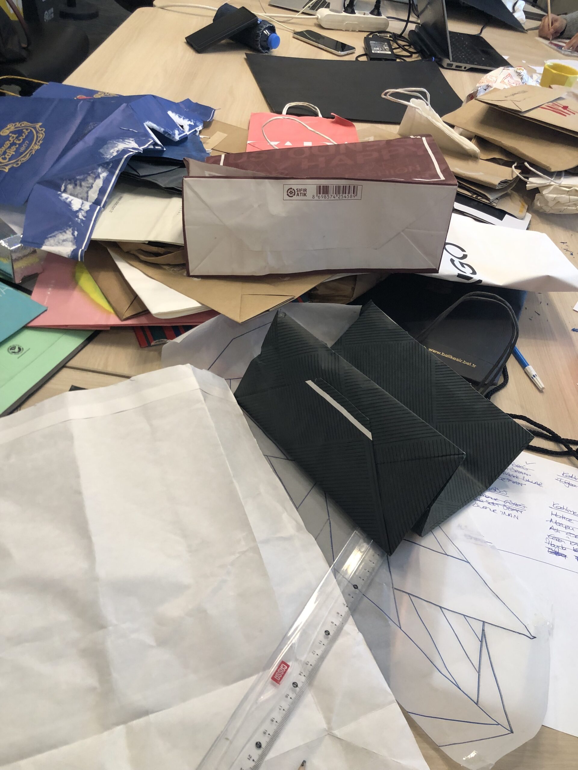 İMÜ Sürdürülebilirlik Topluluğu (IMUSUS), Üniversitemiz kampüs alanları içerisinde ortaya çıkan kağıt atık miktarını azaltmak üzere geri ve ileri dönüşüm çalışmaları gerçekleştirmeye devam ediyor. IMUSUS bu projeler kapsamında, Sürdürülebilirlik Ofisi iş birliği ile gerçekleştirdiği kağıt geri dönüşüm çalışmalarına ek olarak, kağıtları ileri dönüştürerek sanat eserlerine dönüştürmeye başladı. Ekip, ambalaj kağıtlarını ileri dönüştürdüğü Lazika projesinden sonra, bu kez karton poşetleri ileri dönüştüren bir sanat atölyesi gerçekleştirdi.