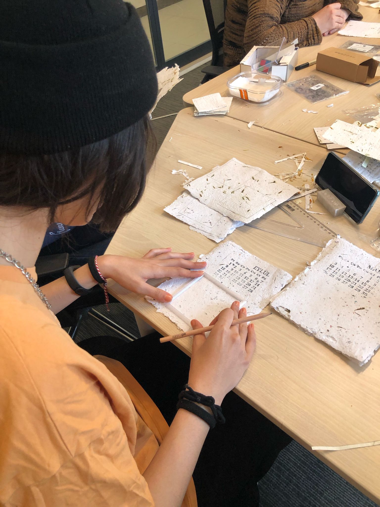 Atölye programı, kurumsal kağıt atıklarının geri dönüşümüne odaklanan “Kendin Yap- Tohumlu Kağıt Atölyesi” ile devam etti. İMÜ Sürdürülebilirlik Topluluğu yönetim kurulu üyesi Sıla Selin ÖZKAN‘ın yürütücülüğünde gerçekleştirilen atölyede katılımcılara öncelikle kağıdın tarihçesi, kağıt yapımında kullanılan malzemeler ve Türkiye’de geleneksel yöntem ile kağıt yapımında kullanılan malzeme ve teknikler ile ilgili bilgi verildi. IMUSUS’ın kurumsal atıkları geri dönüştürme projesi ile ilgili de bilgi veren ÖZKAN, katılımcılara atık kağıtların nasıl geri dönüştürüleceği ile ilgili teknik bilgi verdi. Atölyenin uygulama aşamasında ise; Üniversitemiz kampüs alanları içerisinde oluşan ve ayrıştırılarak toplanan atık kağıtlar geri dönüştürülerek yeni tohumlu kağıtlar haline getirildi. Geleneksel yöntemle gerçekleştirilen kağıt üretim atölyesinde öncelikle, parçalanan kağıtlardan kağıt hamuru hazırlandı. Takvim üretmek amacı ile kullanılacak olan kağıtların, kullanımdan sonra atık haline gelmemesini amaçlayan IMUSUS, her ayın takvim kağıdının kullanım sonrasında kompost olması ve bu süreçte kır çiçekleri yeşermesi için, kağıt hamuruna kır çiçeği tohumları ekledi. Tohumlu kağıtların üretiminde topluluk üyeleri tarafından BioBlitz atölyelerinde toplanan kır çiçeği tohumları kullanıldı. Böylece, üretilecek olan takvimlerin kullanım amaçları tamamlandığında biyoçeşitliliğe katkı sağlaması amaçlandı. Atölye kapsamında 500 gram atık kağıt geri dönüştürüldü.