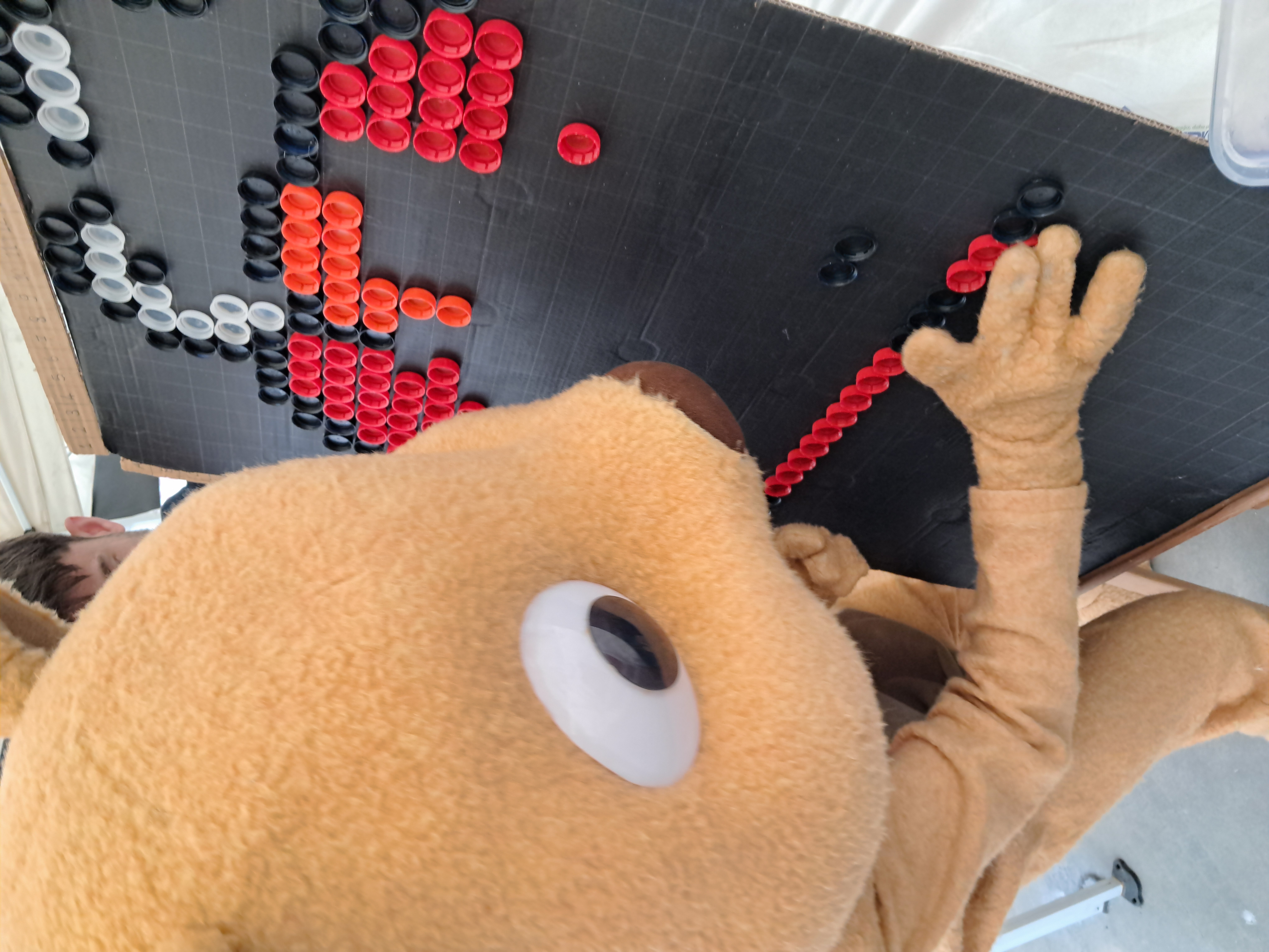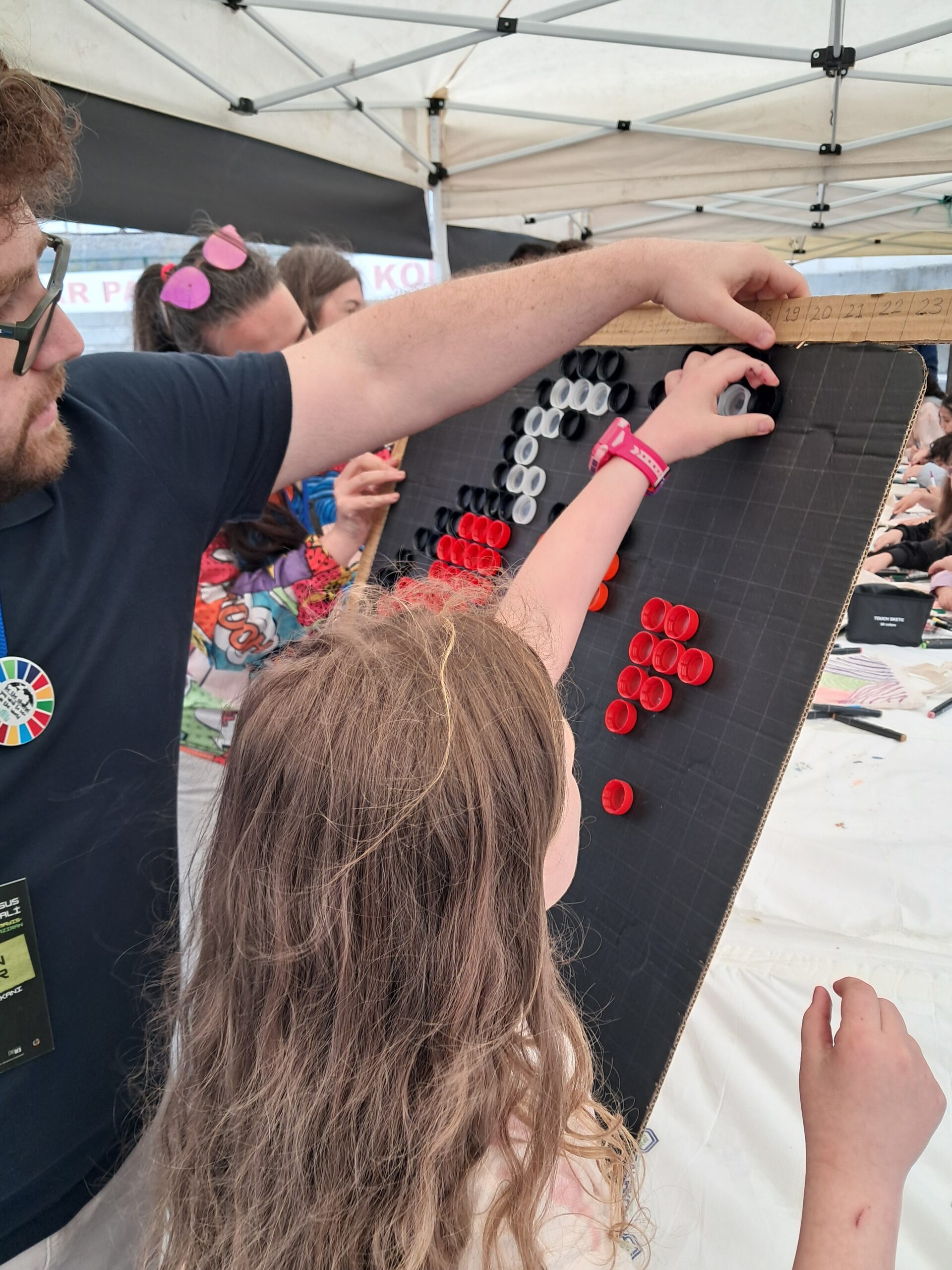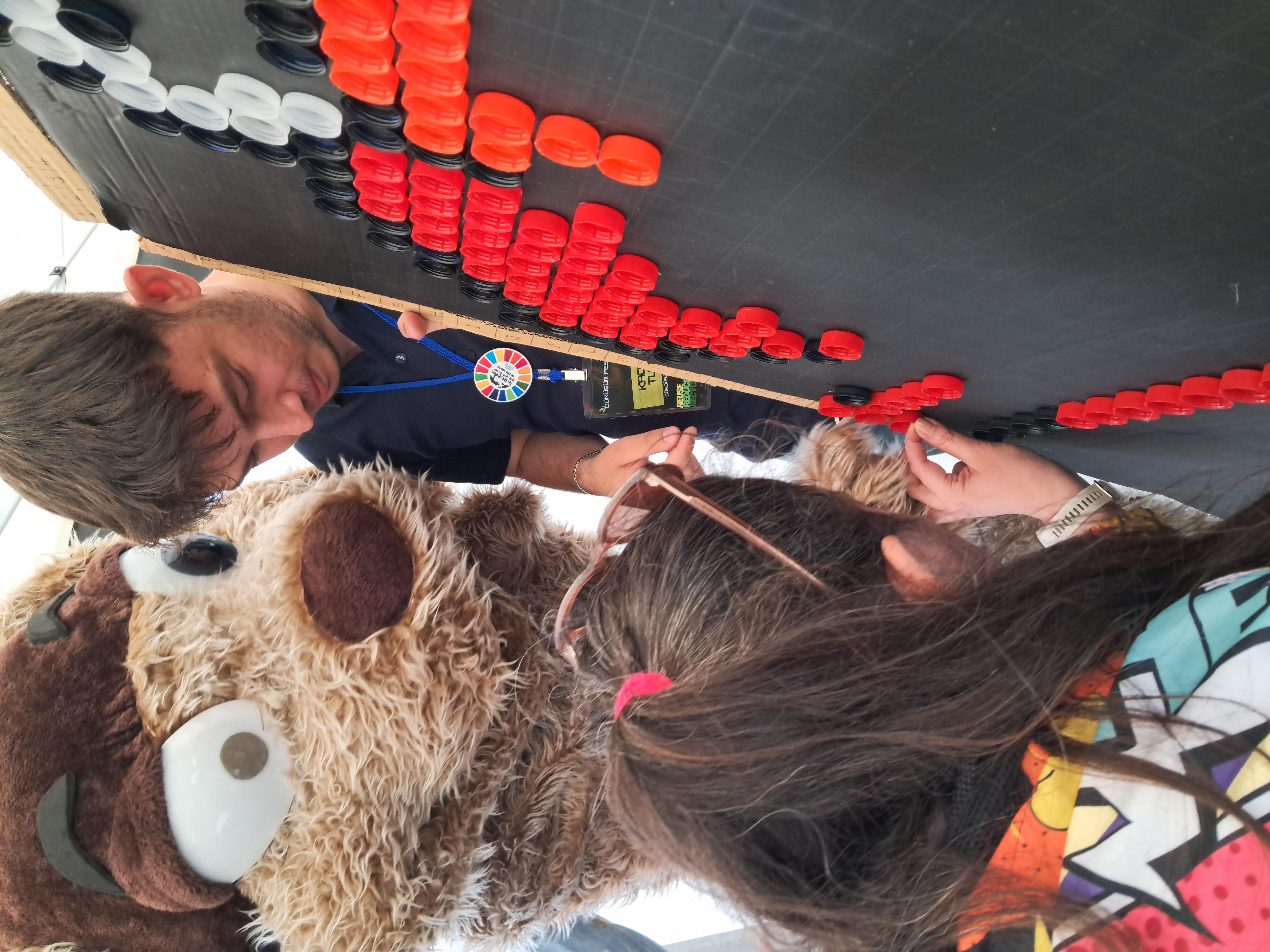 Pazar günü saat 13:00-16:30 saatleri arasında kamuya açık olarak gerçekleştirilen şenlikte, IMUSUS plastik kapakların sanat eserine dönüştürüldüğü bir “Plastik İleri Dönüşüm” atölyesi düzenledi. Şenlik süresince devam eden atölyede, topluluğun kampüs içerisindeki cafe ve kantinlerden topladığı plastik kapaklar ile marketlerden temin edilen atık kartonlar kullanılarak, katılımcıların yardımıyla Susam Sokağı şovunun ünlü karakteri Elmo’nun yer aldığı bir tablo oluşturuldu. Katılımcılar, kendilerine verilen koordinatlarla kapakları doğru alana yerleştirerek hem eserin ortaya çıkmasına aktif katkı sundu hem de “yeniden kullanım”, “atık azaltımı” ve “döngüsel ekonomi” gibi sürdürülebilir kalkınma kavramlarını uygulamalı olarak deneyimledi. Bu yaratıcı geri kazanım projesiyle toplamda 570 adet plastik kapak kullanılırken, yaklaşık 765gr plastik ileri dönüştürülerek atık olmaktan kurtarıldı. Tamamlanan eser, Dönüşüm Festivali sergisinde sergilenecek üçüncü eser oldu.