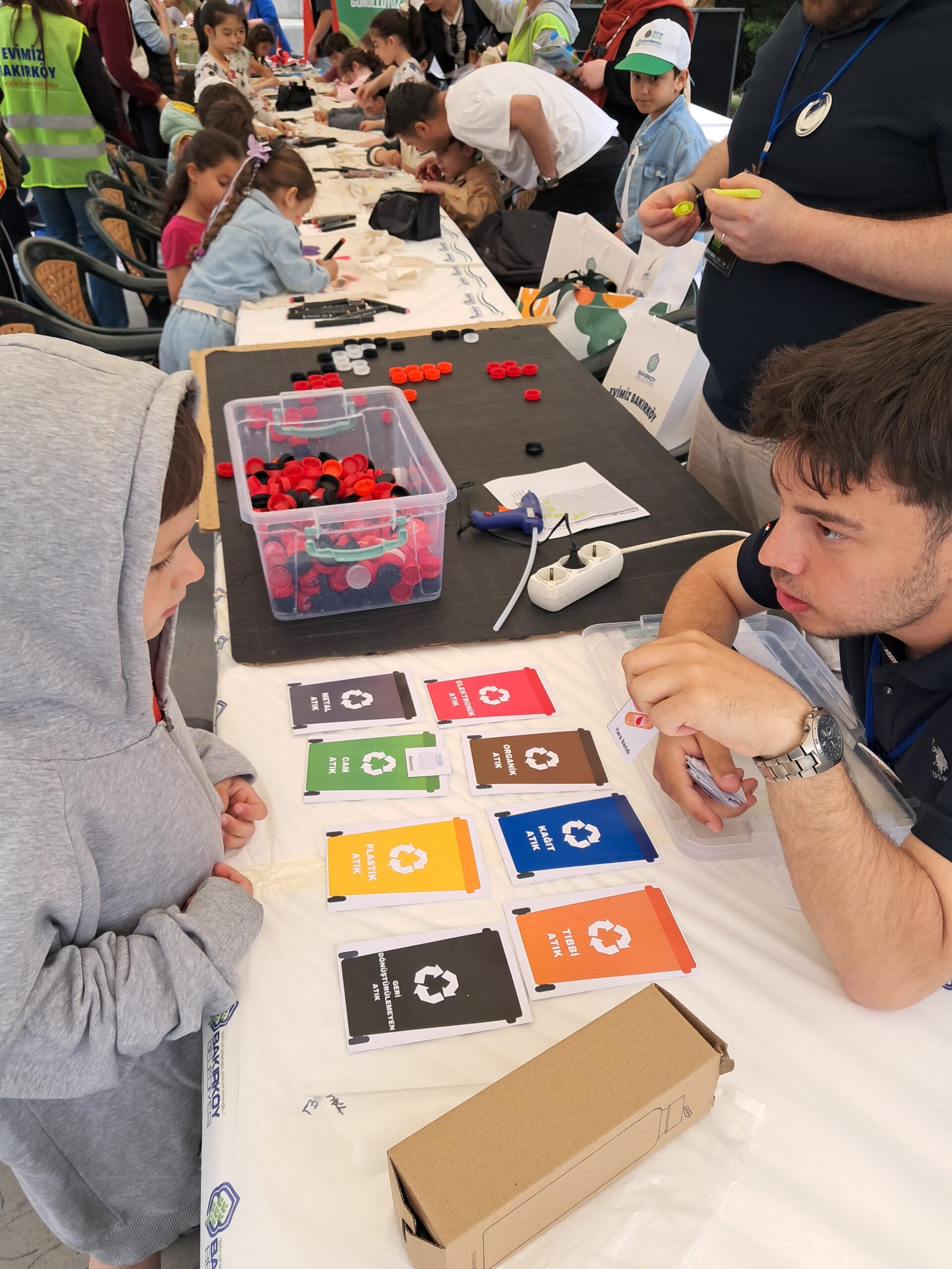 Şenlik kapsamında IMUSUS tarafından gerçekleştirilen ikinci atölye, çocuklara yönelik çevre eğitimi içerikli “Atık Ayrıştırma Oyunu” oldu. İstanbul Medeniyet Üniversitesi Sürdürülebilirlik Ofisi tarafından tasarlanan bu eğitici oyun, Türkiye’de yürürlükte olan sıfır atık sistemi hakkında temel bilgileri eğlenceli bir yöntemle çocuklara aktarmayı amaçladı. Oyunda çocuklara plastik, cam, metal, kağıt, tıbbi atık, elektronik atık, organik atık ve geri dönüşmeyen atık türlerini temsil eden kartlar verildi ve bu atıkların renk kodlu kutulara doğru şekilde atılması sağlandı. Geri dönüşebilen ve dönüşemeyen malzeme türleri hakkında yapılan bilgilendirme ile çocukların kaynakta ayrıştırma bilinci geliştirildi. Etkinliğin sonunda ise; çocuklara İMÜ Sürdürülebilirlik Topluluğu’nun “Dönüşüm Festivali” kapsamında düzenlediği pet şişe dönüşüm atölyelerinde pet şişelerin geri dönüştürülmesiyle ürettiği oyun hamuru kalıpları hediye edilerek çocuklara hem kalıcı bir çevre mesajı verildi hem de çocukların geri dönüşüm ürünleriyle tanışması sağlandı.
