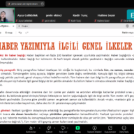 Eğitimin son bölümünde ise Öğr.Gör. Zehra SAVAN, haber yazımı sırasında yapay zekadan nasıl destek alınabileceği hakkında bilgiler verdi. SAVAN, Sürdürülebilir Kalkınma Amaçları’na dair önemli derecede bir veri kaynağı olmasının, bu konulara dair yapılacak araştırmaların yanı sıra, haber yazımında da kullanılabilme imkanı sağladığını ifade etti. Bununla birlikte, kurumsal politikaların ve çalışmaların temel amaçlarının haber metinlerine doğru aktarılabilmesi için haber yazımı sürecinde yapay zekaya verilen direktiflerin olabildiğince detaylandırılması gerektiğinin altını çizen SAVAN, sürdürülebilir kalkınma amaçlarını konu alan haberler için anahtar kelimelerin nasıl seçilmesi gerektiği hakkında çeşitli bilgiler vererek eğitimi sonlandırdı.